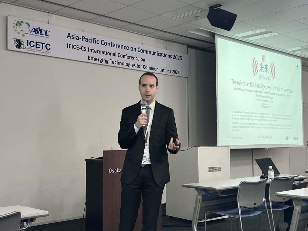 In Nov. 2025 Adrian Garcia Rodriguez from Ericsson Research France delivered a keynote on the role of AI in the 6G air interface at the International Conference on Emerging Technologies for Communications (ICETC) in Osaka, Japan. The talk summarized the 3GPP standardization developments, Ericsson 6G positions and shared some early results from the 6G-MIRAI-HARMONY project illustrating the performance of an AI/ML physical layer functionality when trained and evaluated with real-world measurement data.